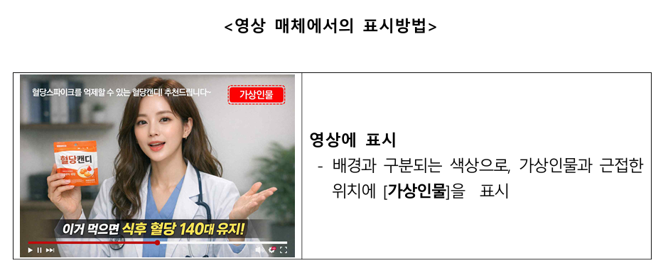 AI로 생성한 가상인물이 제품을 추천·보증하는 광고를 집행할 경우, 반드시 ‘가상인물’임을 명시해야 합니다.