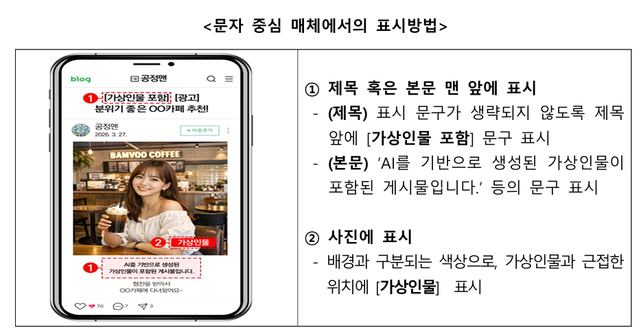 공정거래위원회가 이 문제를 정면으로 다루기 시작했습니다. 가상인물 표기 의무를 명확히 합니다.